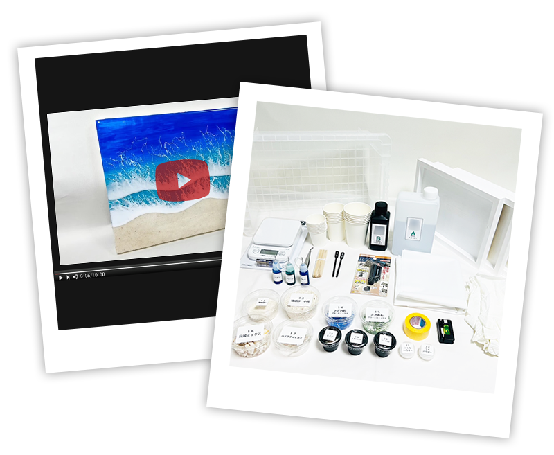 必要な資材のうち最も大切な 2液性レジンはSEASでしか手に入らない魔法の液体 独創的なアート作品制作に必須条件の各種レジン液をそろえています。 動画講座もオンラインショップからご購入ください。